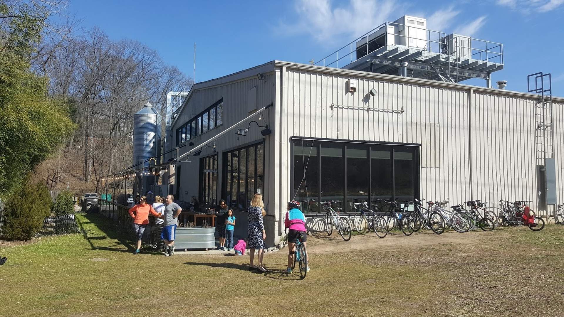 A more interesting pattern, in my opinion, are when retail spaces embrace the trail. One example of this is Caboose Brewing out in Vienna. While it has a standard drive up and park your car entrance, it also has a direct entrance from the W&OD Trail with bike racks. As you can see from this photo, many folks take advantage of this option.
